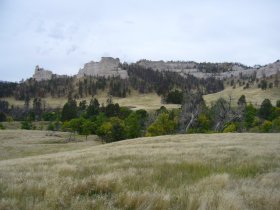 For the past two days I’ve been in Sioux County, Nebraska – just east of Wyoming and just south of South Dakota. As I traveled up through the western panhandle to arrive at this spot, I was pleasantly surprised by the varied terrain – not at all the monotonously flat landscape that I expected. The landscape in this so-called Pine Ridge area is even more surprising – an impressive escarpment drops 1,400′ from the high shortgrass prairie down to an eery badlands below. The escarpment itself is forested with Ponderosa pine and is studded with numerous impressive buttes.