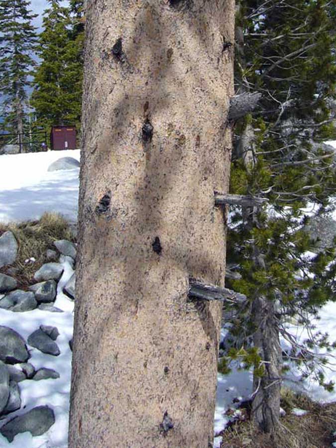 This is the dominant conifer and pine species in the Tahoe Basin. It is very closely related to ponderosa pine – so much so that some authors have treated it as a variety or synonym of the latter. Here, I follow the opinion of Conifers of California by Ronald M. Lanner (1999), who notes important differences in the chemical composition of its oleoresin (containing an explosive hydrocarbon