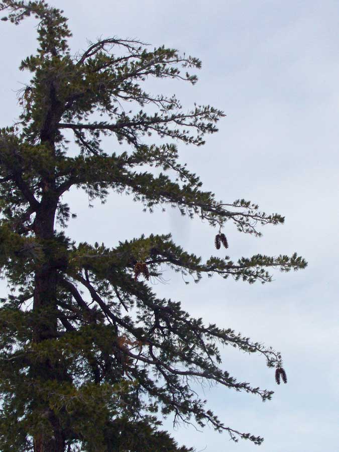 If there was any pine that I most looked forward to finding on this trip, it was this one². In contrast to the straight, narrow-crowned Jeffrey pines that dominate the Tahoe Basin, mature sugar pines have a ragged quality to them that makes each one unique. Or at least that was the feeling that I got from my readings.
