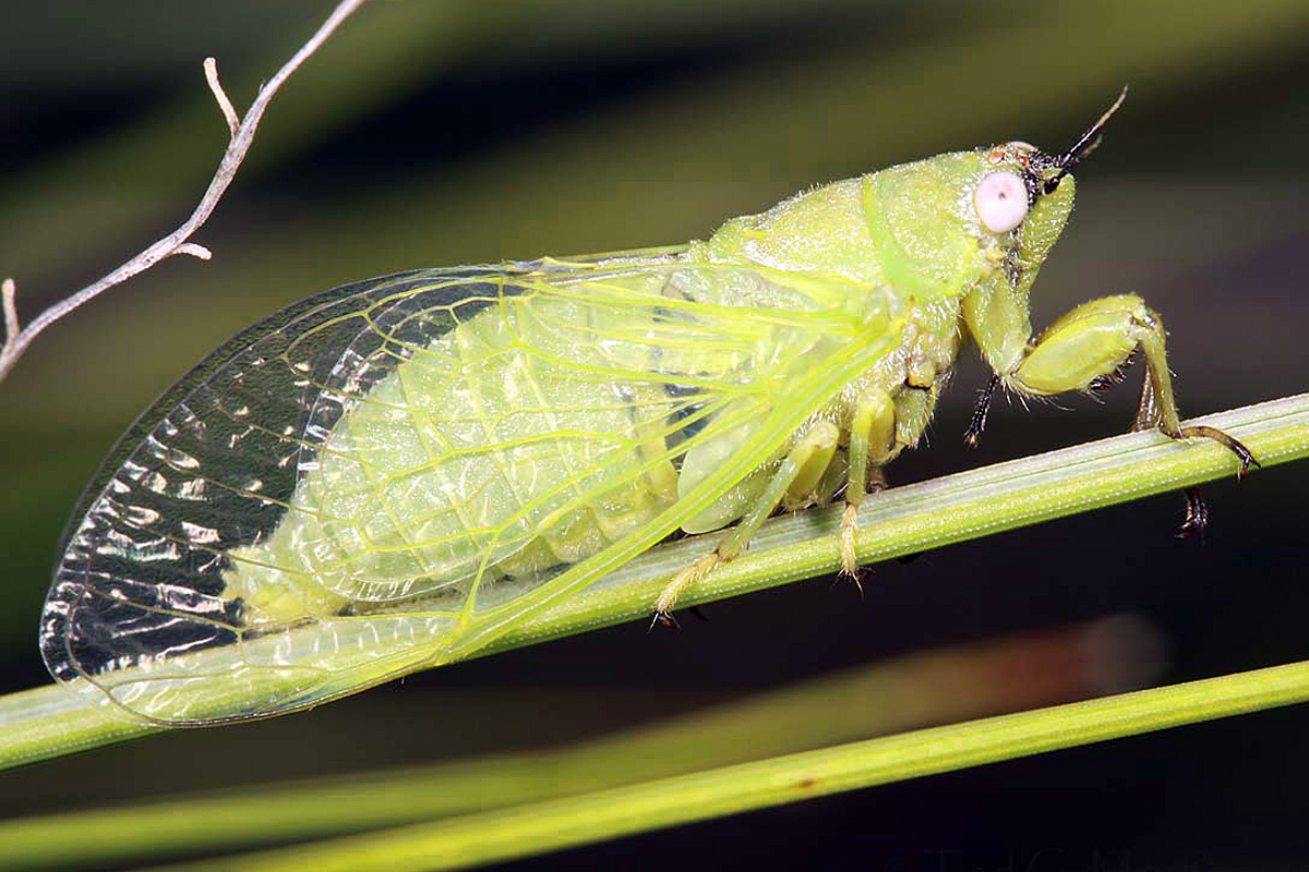 3. Great post Ted….What a pretty little cicada. You’ve been very fortunate this year with your tiny cicada discoveries. Just how small is this species? In your picture it looks about the size of a leafhopper…I am assuming they are significantly larger than that. I know you mentioned they are lime green, but on my screen it has a definite yellow tint to it. Perhaps it should be called the Lemon-Lime Cicada?