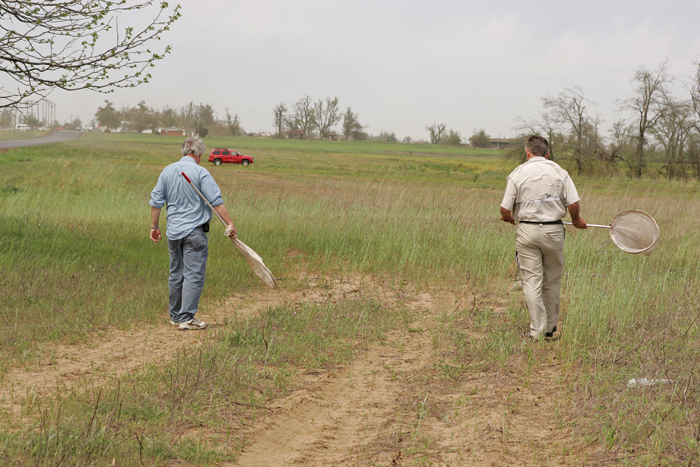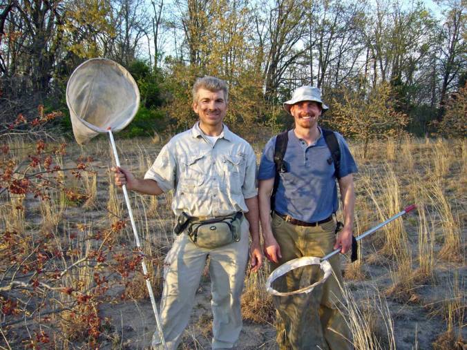 Ted and Chris take a break from looking for tiger beetles in a sand prairie relict. Photo by Rich Thoma.
