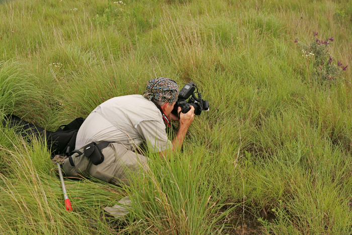 Ted photographing the robber fly, Ospriocerus abdominalis, at Star School Hill Prairie in the Loess Hills of northwest Missouri.