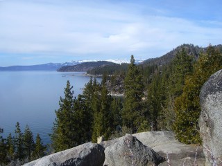 Looking north along Lake Tahoe’s east shore from atop Logan Shoals Overlook.