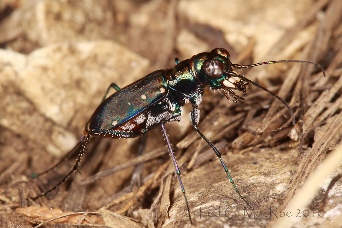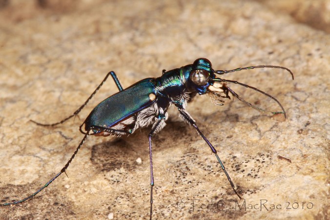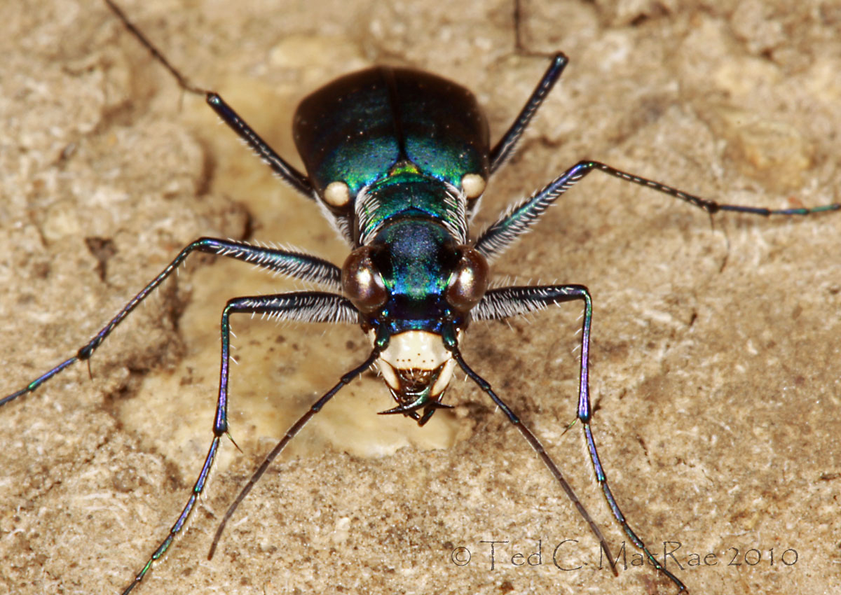 3. Very nice photographs, as usual Ted. The C. r. cumatilis form reminds me of Cicindela hemorrhagica form “pacifica” that we have here in Southern California long the coast. Also blue with hardly any maculations, and a red abdomen.
