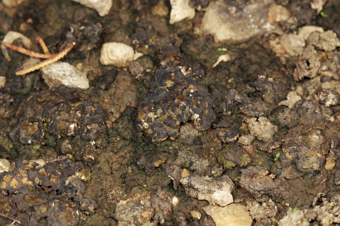 There is another site even further north in the county (Merriam Woods), which I found for the first time on this trip and, to my knowledge, represents the northernmost extent of the population in Missouri. At this site, nearly all of the individuals show coppery-brown coloration with almost no hint of green. These fully brown individuals seem to represent an appearance that is completely unlike that seen in any other part of the range of the species. The individual in the photo below typifies the appearance of the beetles seen at this site: I’m less familiar with coloration of the population further south in Arkansas, although in my limited collecting in that area I recall that most individuals I encountered exhibited the dark olive-green coloration typical of individuals at Blackjack Knob and other more southern sites in Missouri. Thus, there seems to a clinal element to variability in coloration in the Missouri/Arkansas disjunct population. I suspect that the unique coloration of the beetles in this population is related to the soils with which they are associated. Light gray Jefferson City-Cotter dolomite bedrock forms the core of the White River Hills landscape and is exposed extensively in the glades that dominate its knobs and slopes. These exposures are weather-stained black and overlain by thin, black soils that support dark, green-black lichens amongst the sparse vegetation, as seen in the following photographs taken at the newly identified northeasternmost site at Caney Mountain Conservation Area: