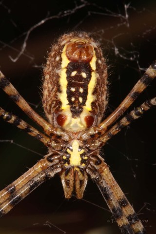 USA: KANSAS, Barber Co., 9 mi W Medicine Lodge on Hwy 160. On web in red clay/gypsum hills mixed-shortgrass prairie.