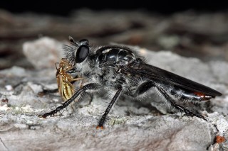This individual was sitting on the trunk of a dead shortleaf pine with a mirid bug for prey.