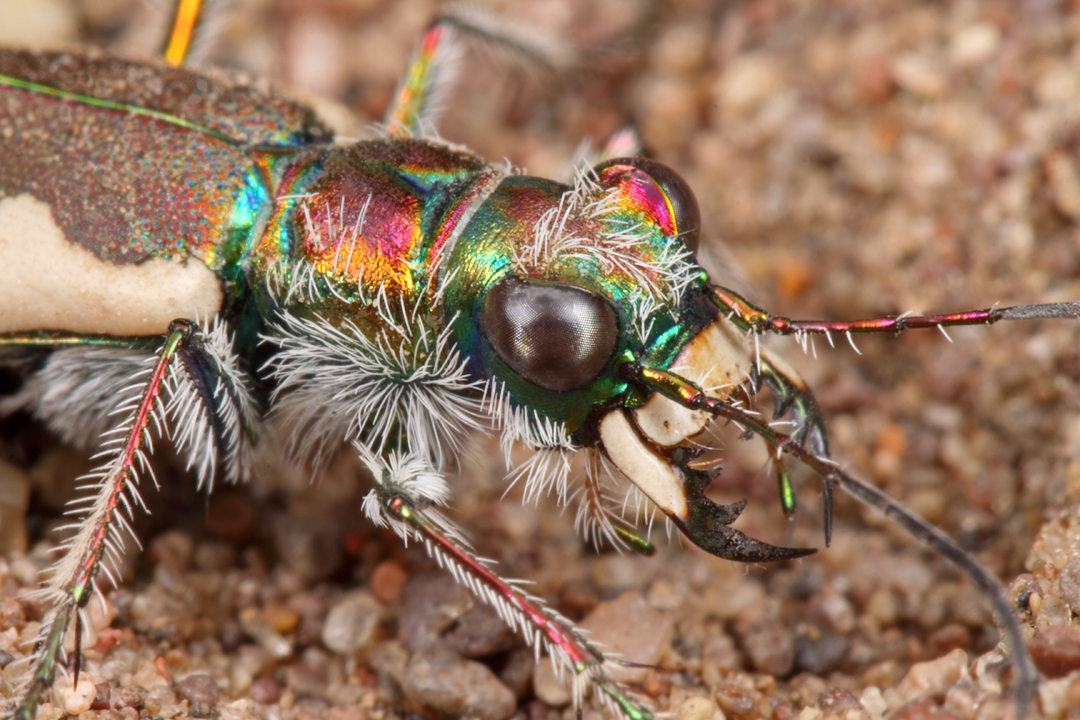 Despite its commonness, it seems that virtually nothing known about the life history of this species or the host plants that it utilizes. Records in Madagascar are all from the south (Bellamy 2006), but all other references to this species consist exclusively of catalogue listings. A large, conspicuous, abundant species such as this almost begs for ecological studies—the “eye spots” can be presumed to function in predator avoidance, but how? What is the purpose of the dense brush of hairs inside the labrum (upper lip) and next to the mandibles, and why is the labrum itself so acutely emarginated? Adults are largely reproducers, not feeders—do these structures serve some other function not related to feeding? What about the dense covering of “pits” over most of the body surfaces—presumably they contain chemoreceptors for smell, but what? Host plant volatiles? Mates? Humidity? So many questions, so few answers. Imagine the even greater paucity of knowledge that exists for its smaller, less conspicuous relatives that also make their homes in the forests of Madagascar (most of them probably not adapting as well to the man-induced changes of the past century).