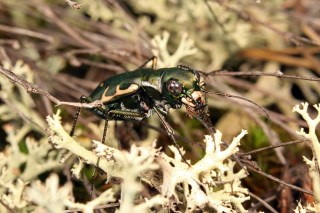 A rather greenish individual tries to hide amongst lichens and shortleaf pine duff.