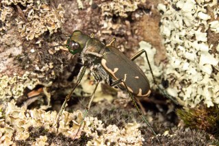 The beetle’s coloration likely has a function in crypsis, as shown by this individual nestled in amongst moss and lichens.