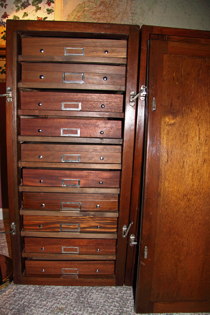 When Essig Museum moved to their new space and made the change to a compactor system, they sold the old cabinets for a song and a dance so I got several. I like my blocky, metallic cabinets, but they’re not as easy on the eye as yours, I must admit.
