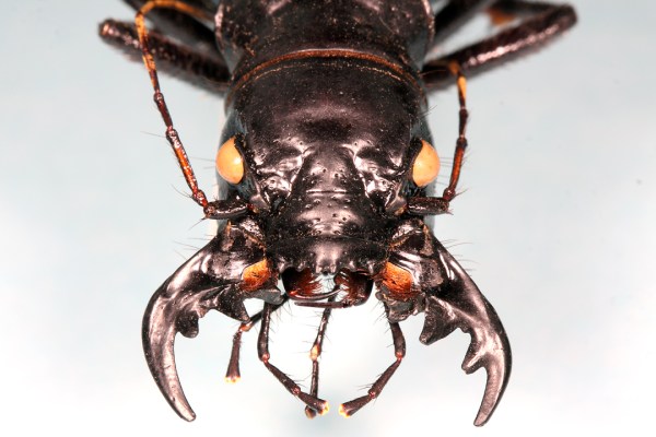 The huge jaws — just like the stag beetle’s — are very weak, and useless for defence.