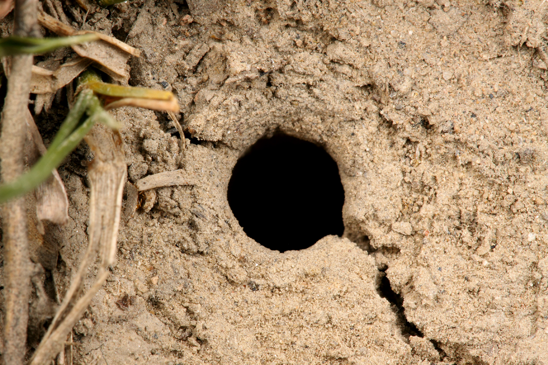 Larval burrows of Cicindelidia punctulata and other tiger beetles lack diggings around the entrance.