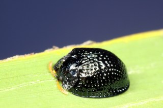 Specially modified tarsi and a hemispherical shape allow the beetle to clamp itself tightly against the leaf to repel attack by ants and other insect predators.