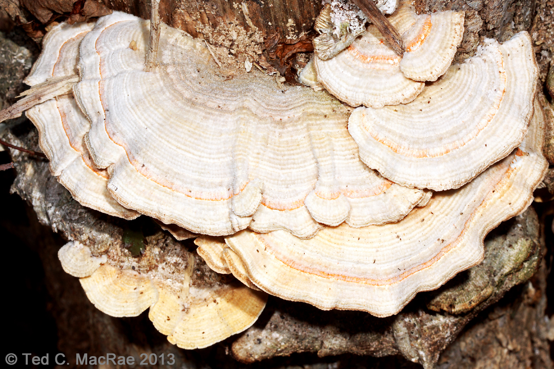 Multicolored gilled polypore (Lenzites betulina) on river birch (Betula nigra) stump | Reynolds Co., Missouri