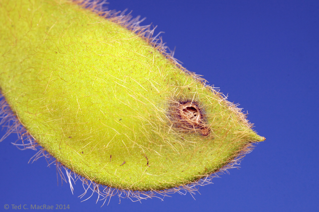 Adult females chew a small hole into the wall of the developing pod, not to feed but for oviposition