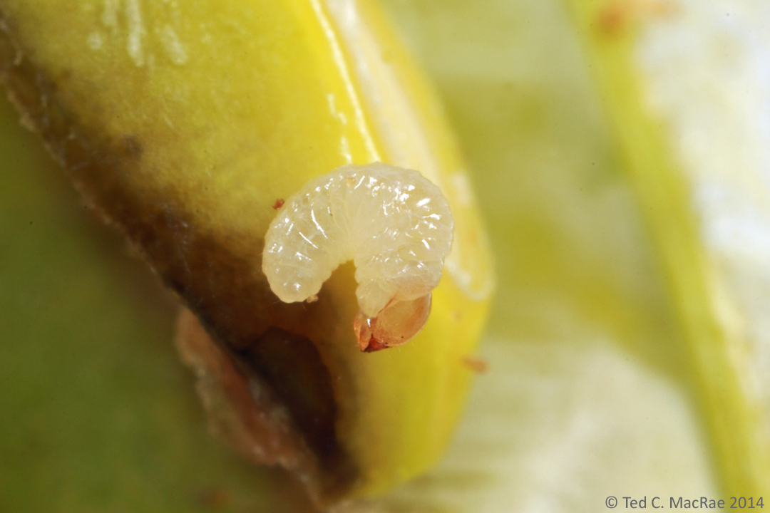 This neonate larva has just hatched and will feed within the pod on developing seeds.