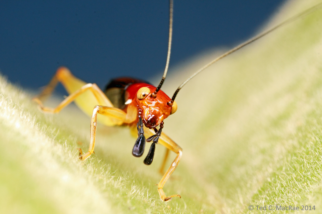 Phyllopalpus pulchellus (red-headed bush cricket)