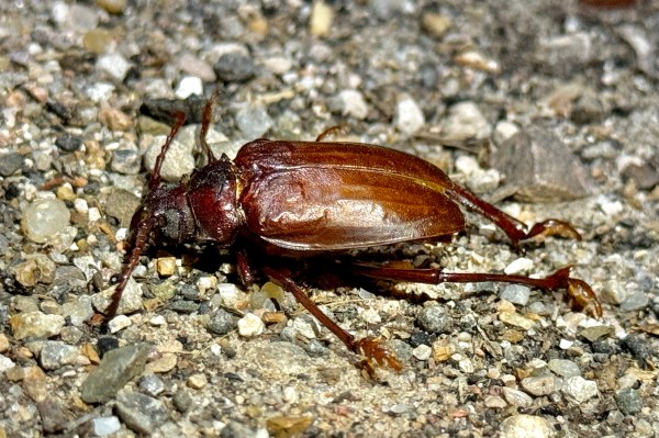 Prionus arenarius (sandwalker prionid—family Cerambycidae) dead female on road through sand dune habitat.