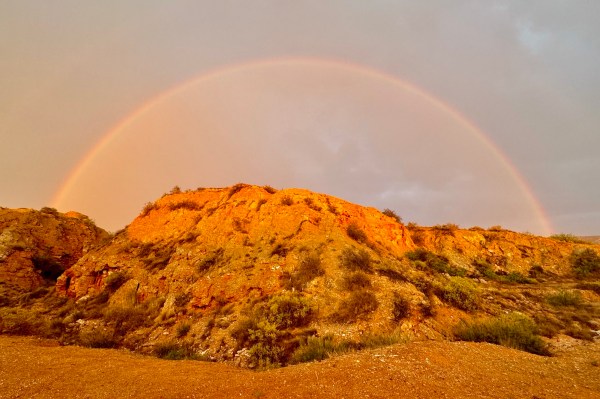 Rainbow-framed canyon walls at the edge of our campsite.
