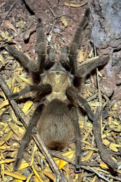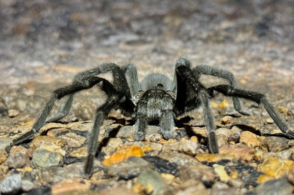 Aphonopelma gabeli (Chiricahuan gray tarantula—family Theraphosidae) after rain at night in saltbush/mesquite chaparral.
