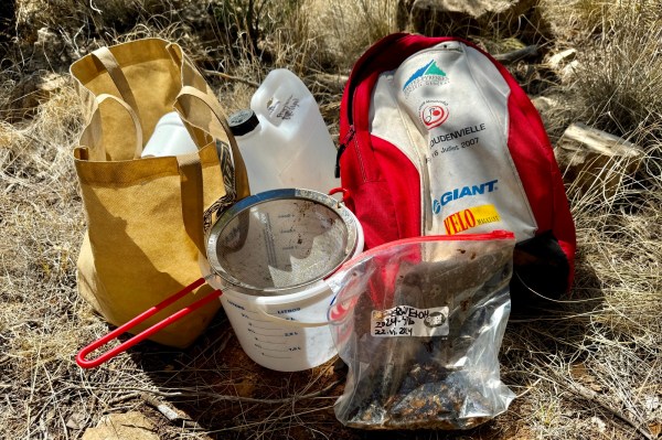 In the campground, I was pleased to see that all three traps were still in place, though the bait and reservoir liquid were both completely gone in them. I was also pleased to find that the traps redeployed nicely with my changes (larger 500-ml bait bottle and a larger volume—1250 ml—of diluted propylene glycol in the reservoir).
