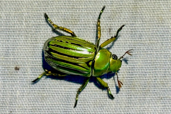 Chrysina gloriosa (glorious jewel scarab—family Scarabaeidae) attracted to ultraviolet/mercury vapor lights at dusk in montane juniper/oak/pinyon woodland.