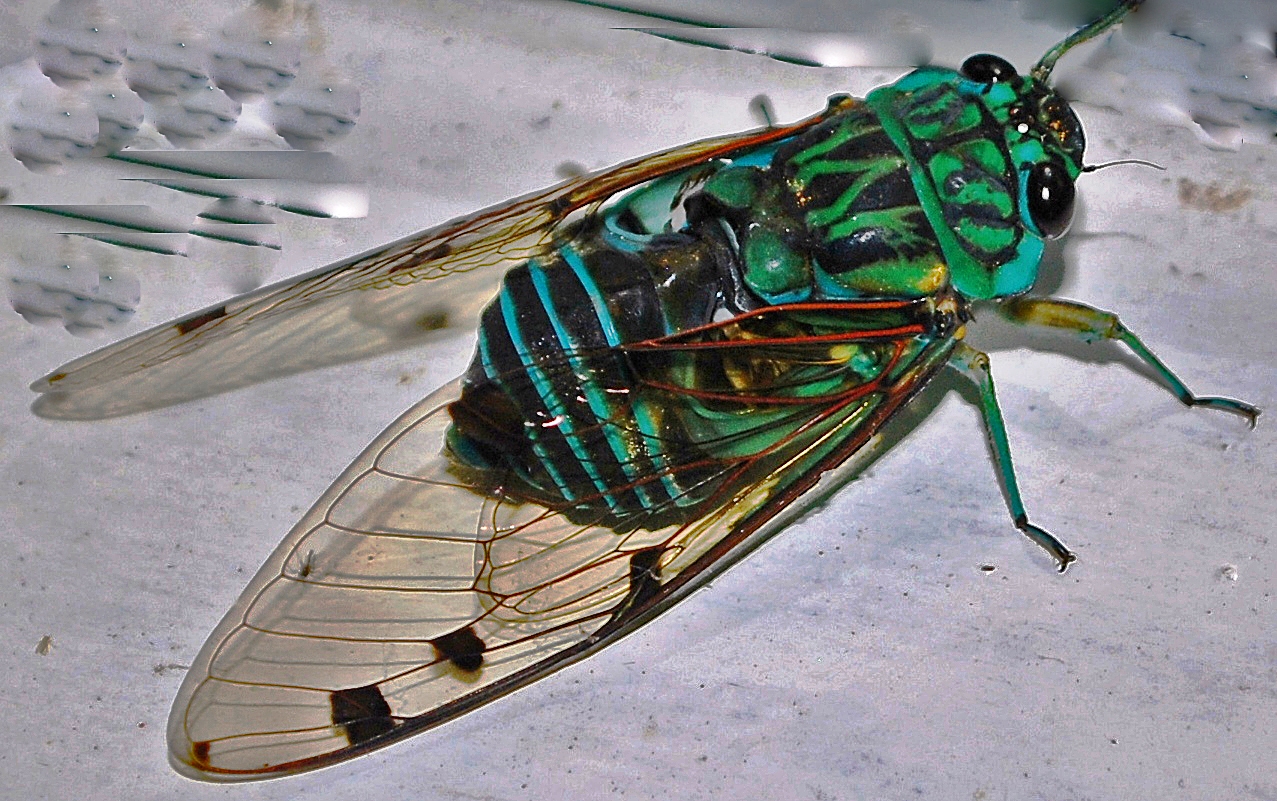 To end on a pretty note, here’s a gaudy cicada that was attracted to lights of the scientific station’s laboratory building in Yasuní National Park, Ecuador, and obligingly posed for a photo on the windowsill.