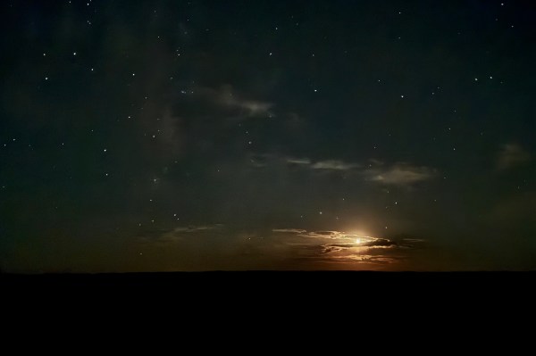 A few big black Eleodes darkling beetles gave me the occasional false start, but in the end I did not find the tiger beetle. I did, however, get to see a beautiful 1st-quarter moonset amidst light high clouds and a starry starry night.