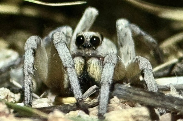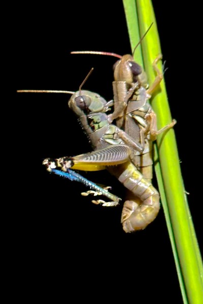 Phoetaliotes nebrascensis (large-headed grasshopper—family Acrididae) in juniper chaparral at night.