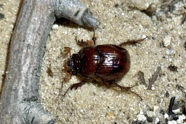 Strategus antaeus carcass remnants found under Quercus marilandica (post oak) at sand blow perimeter in xeric sand prairie remnant. Photo by Art Evans.