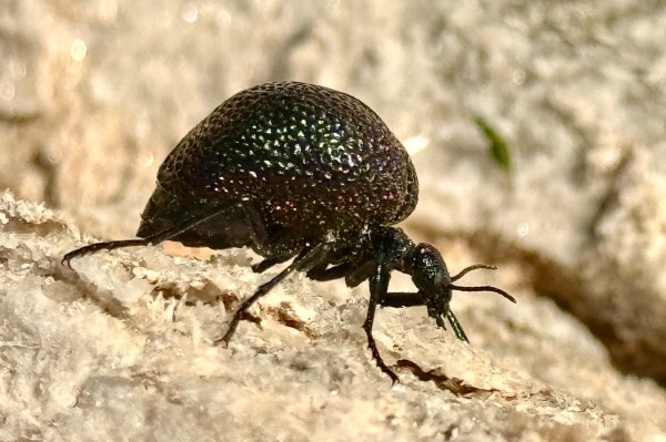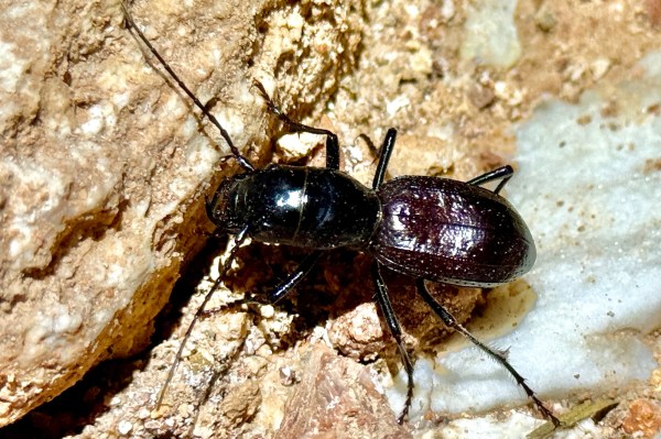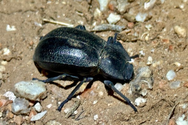 Eusattus reticulatus (sand darkling beetle—family Tenebrionidae) in juniper/oak/pinyon woodland on sandstone escarpment.