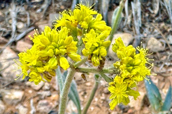 Not much of note was seen on the blooms, but I did find the fascinatingly-inflated Cysteodemus wislizeni (black bladder-bodied blister beetle) crawling on the ground amongst them.