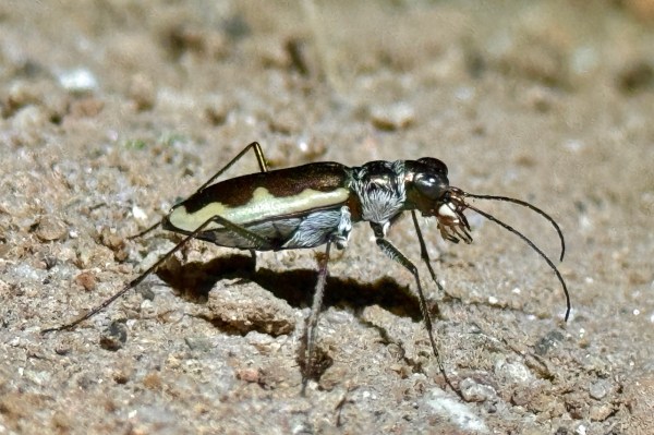 Jundlandia lemniscata rebaptisata (rouged tiger beetle—family Cicindelidae) on sandy-loam 2-track through dry grassland.
