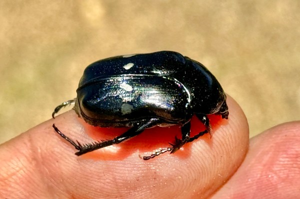 In the old days, entomologists placed beetles with club-shaped antennae—the “club” being composed of multiple flattened segments—into the suborder Lamellicornia. The term, derived from the Latin words lamella (“thin plate”) + cornu (“horn”), is now obsolete, and the group is more properly called the Scarabaeoidea—a superfamily comprising stag beetles, dung beetles, and scarab beetles. The males of this particular species, Polyphylla uteana, have especially impressive clubs composed of seven highly elongate plates that are held closed when inactive but open up fan-shaped when searching for females. The surfaces of the plates are packed with olfactory (smell) receptors that detect female pheromones, and opening the clubs exposes the plate surfaces to maximize the ability of the beetle to get a “whiff” of any nearby females. There are dozens of species in the genus distributed throughout North America, but this one is endemic to the Coral Sand Dunes in southwestern Utah. They were attracted to ultraviolet light at night back in June 2023.