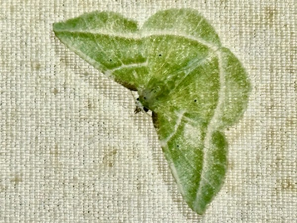 Dichorda iridaria (showy emerald moth—family Geometridae) at ultraviolet light in restored tallgrass prairie remnant.