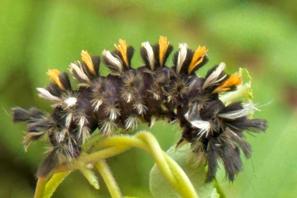 The most unusual find, however, was a bizarre, green, jewel of a caterpillar found crawling on the forest floor—Isa textula (crowned slug moth or skiff moth), fringed with lacy projections that make it look more like a sea slug than an insect!