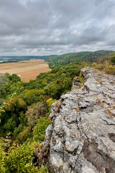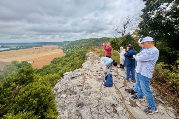 The group not only spent its time with its eyes down, but also out—across the vast Mississippi River valley spread out below the several lookout points dotting the trails. Tawny fields of near-ready-to-harvest corn provided a beautiful backdrop against the resplendent red sumacs and brilliant orange maples lining the blufftops.