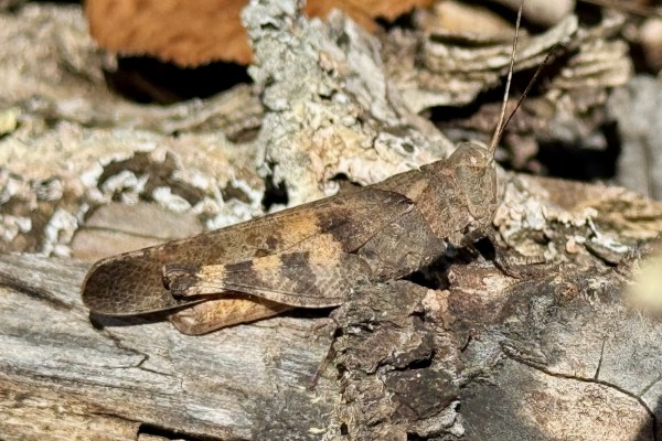 The abundance of lichen grasshoppers on the glades was somewhat expected, but what was not was the diversity of other grasshoppers also present at the margins of the glades and in the surrounding dry woodlands. Four such species were documented, including Hippiscus ocelete (wrinkled grasshopper), Melanoplus ponderosus (ponderous spur-throat grasshopper), Melanoplus rusticus (obovate-winged grasshopper), and Spharagemon bolli (Boll’s grasshopper)—all possessing their own forms of cryptic coloration that made relocating them after they jumped difficult.