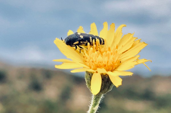 I was, however, finding flowers in bloom, and on them beetles. The most abundantly blooming plants were Melampodium leucanthum (blackfoot daisy)—previously seen to be a good Acmaeodera flower, and over the next couple of hours traversing the trail and exploring it’s off-trail nooks and crannies I collected a very nice series of A. obtusa along with a few Trichodes bibalteatus and mordellid beetles (the latter for Enrique) off its flowers.
