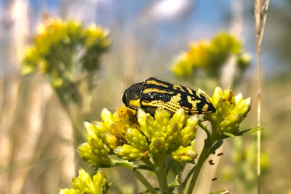 Even more beetles were collected on the other side of the pond, where flowers of Ratibida columnifera produced more of the same Acmaeodera along with Batyle ignicollis, B. suturalis, a single Typocerus confluens, and several melyrid beetles, bees, and wasps. Another B. ignicollis was also collected on the flower of Hymenopappus tenuifolius.