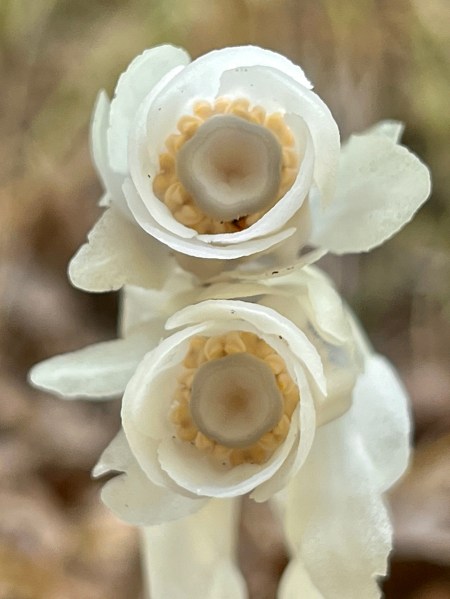 A little further up the trail we began encountering small patches of Mountain iris (Iris douglasiana, family Iridaceae). Flower color for this native species ranges from cream-white to lavender, but all of the flowers we saw were of the white variety.