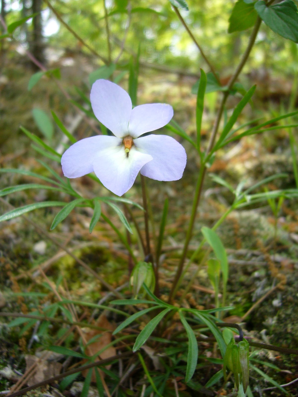 I knew we were in a special place almost from the beginning when I noticed a small flowering plant growing next to the trail under the mixed pine/oak canopy. I’m not a very good botanist, but I instantly recognized the plant as dwarf spiderwort (Tradescantia longipes), an Ozark endemic known from only a handful of counties in Missouri and Arkansas. I knew this only because I had just the night before read about this wonderful plant on Ozark Highlands of Missouri,