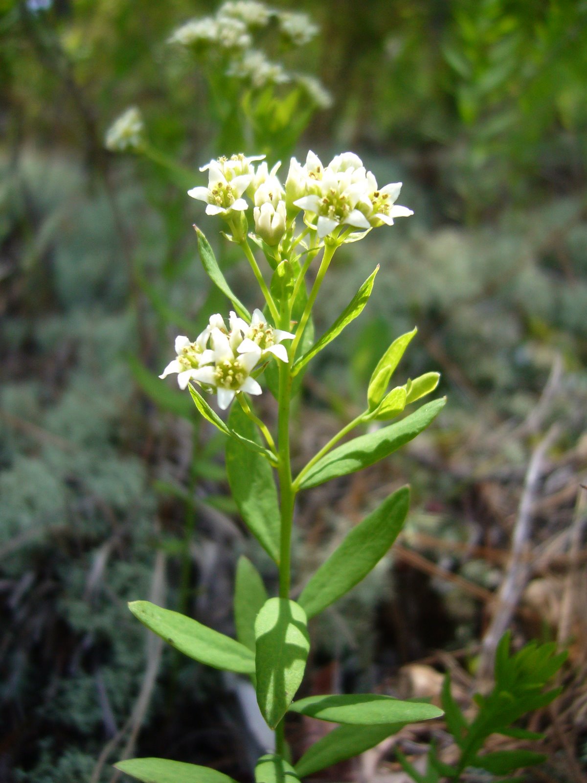Thickets of highbush huckleberry (Vaccinium stramineum) and carpets of reindeer moss in the open areas belied the acidic nature of the igneous substrate. Stands of bastard toad flax (Comandra richardsiana) in full bloom were found at the tip’s dry, rocky tip. These interesting plants feed parasitically on neighboring plants,