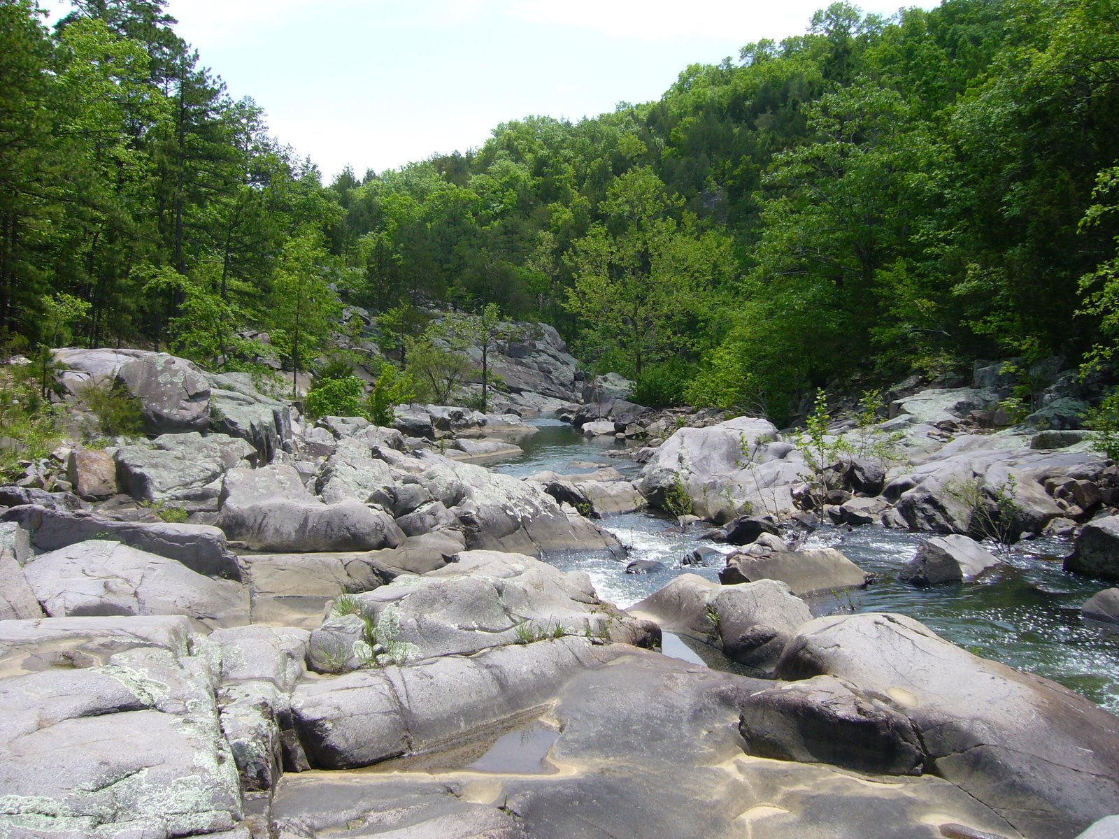 During the past several years that Rich and I have been hiking the Ozark Trail, most of our hikes have taken place in the fall and winter months. From a hiker’s perspective, I really enjoy these off-season hikes – the foliage-free canopy affords unobstructed views of the terrain and vistas, the cool (even cold) temperatures are more comfortable under exertion (provided one has properly layered), and there are no mosquitos to swat, ticks to pick, or gnats to incessantly annoy. I also enjoy them as a naturalist, for the world is quiet and still, allowing me to focus on things I may not notice amidst the cacophany of life during the warmer months. By the end of winter, however, the biologist in me yearns to once again see bugs and flowers and the great interplay of life. Unfortunately, this makes something as simple as hiking from point A to point B rather difficult – too many distractions! Nevertheless, each spring Rich and I try to hike a small leg of the Ozark Trail before the crush of summer activities fills our calenders. Last week, we chose the Marble Creek Section,
