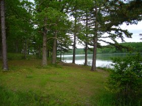 We stopped for lunch on a little point extending out towards the lake. The forest overstory was dominated by an open mixture of white oak (Quercus alba) and shortleaf pine (Pinus echinata).