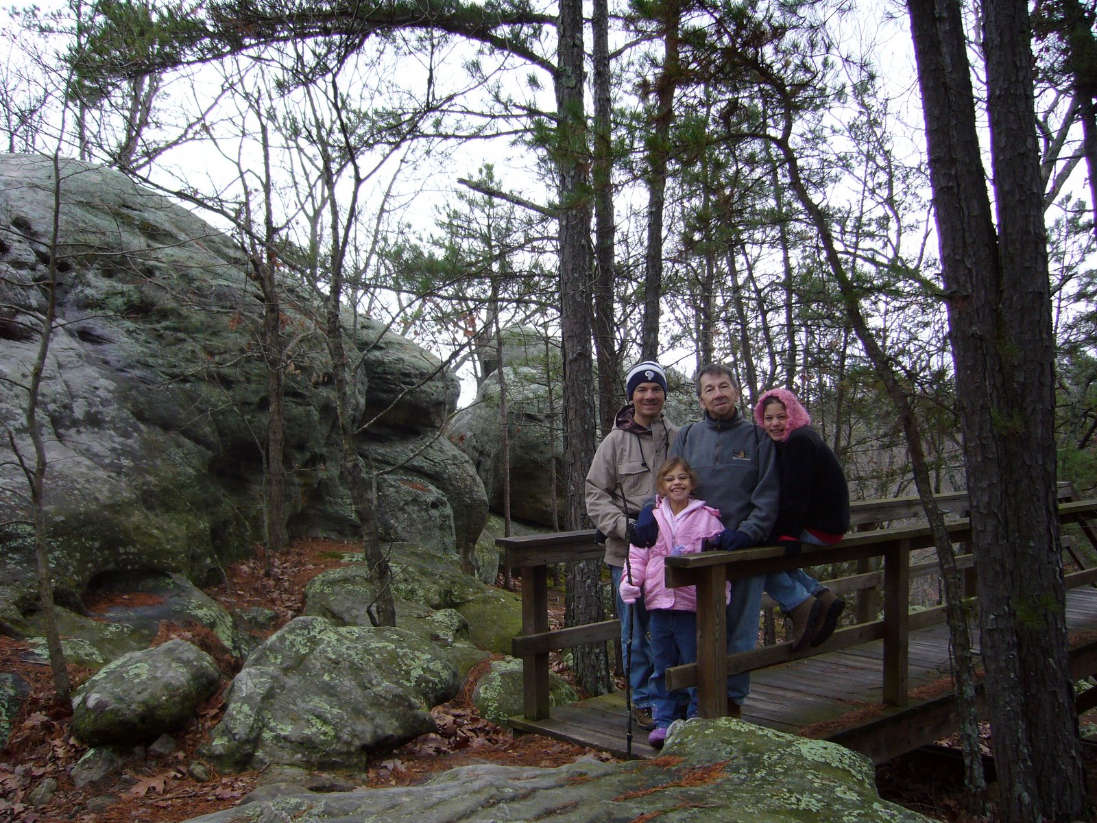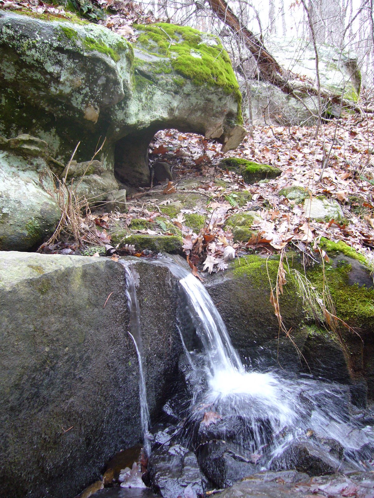 Pickle Springs Natural Area lies in Ste. Genevieve County, about an hour south of St. Louis. Like Hawn State Park, the geology of this area and its effect on the flora have resulted in a unique collection of geologic features and plants found in few other places. The Lamotte sandstone outcrops that dot the landscape were formed nearly half a billion years ago when sand deposited in an extensive maze of braided river channels was cemented and buried under younger layers of limestone and dolomite formed from deposits on the floors of ancient seas that covered the interior of the continent. Later, the periods of uplift that created the St. Francois Mountains and resulting erosion of overlying strata once again exposed the sandstones at the surface. Millions of years of water, ice, rain, wind, and plants have further shaped the exposed sandstones, creating fanstastic shapes and formations and cool, deep canyons. The weathered sandstone created acid soils which support many unique plants. During the ice ages, northern plants and animals moved into the area ahead of the advancing glaciers. Mammoths roamed the landscape grazing on the northern vegetation supported by the area’s acid soils. Eventually the ice retreated, and so did the mammoths. But many of the plants remained – able to hang on in the cool, moist canyons long after the mammoths that once roamed these canyons disappeared. Because of this unique concentration of rare plants and geologic features, the area has been designated a Missouri Natural Area and a National Natural Landmark.