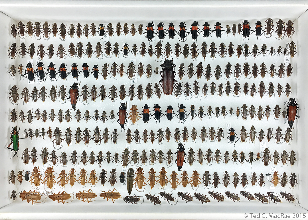 Rearing, on the other hand, takes true dedication. One must not only learn potential host plants, but also how to recognize wood with the greatest potential for harboring larvae, retrieve it from the field, cut it up, place it in rearing containers, and monitor the containers for up to several months or even years before hitting pay dirt (maybe!). Despite the considerable amount of effort this can take, the results are well worth it in terms of obtaining a diversity of species (usually in good series), some of which may be difficult to encounter in the field, and identifying unequivocal larval host associations. I have even discovered two new species through rearing (Bellamy 2002, MacRae 2003)! Moreover, checking rearing containers can be a lot of fun—in one afternoon you can collect dozens or even hundreds of specimens from places far and wide, depending on how far you are willing to travel to collect the wood. Because of the effort involved, however, the more you can do to ensure that effort isn’t wasted on uninfested wood and that suitable conditions are provided to encourage continued larval development and adult emergence from infested wood the better. It is with this in mind that I offer these tips for those who might be interested in using rearing as a technique for collecting these beetles.