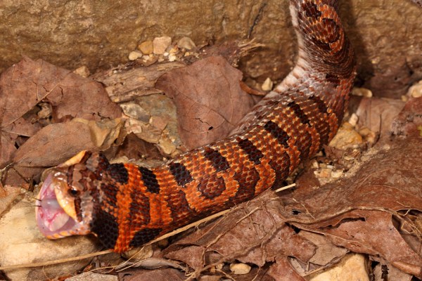 As the snake began trying to crawl away, it opened its mouth widely…