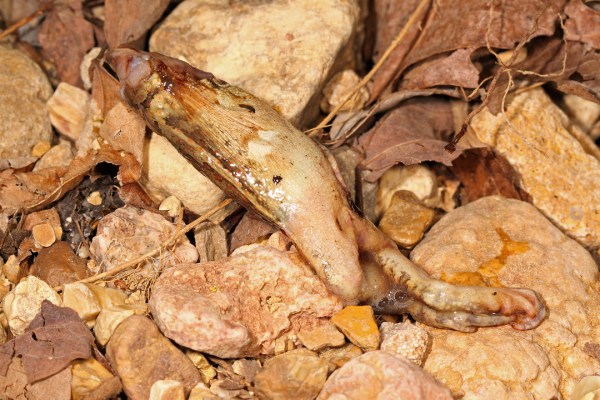 …and out came it’s last meal (obviously a frog, but with the head and front legs already digested, too difficult to identify any further)!